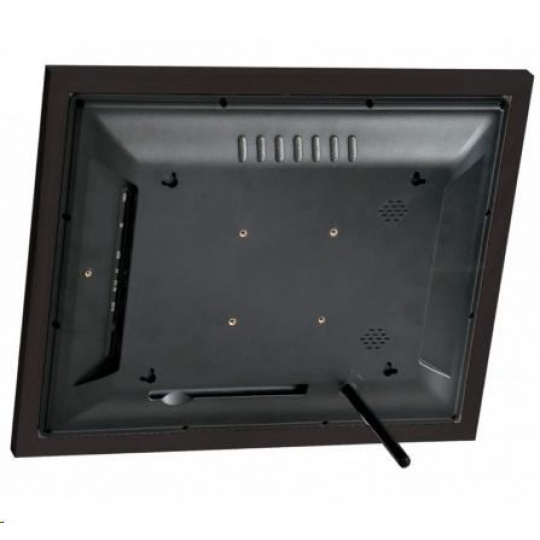 Digitální fotorámeček s úhlopříčkou 15", LED backlight, rozlišení 1024x768px, 4:3, prohlížení obrázků ve formátu JPEG/BMP/PNG, poslech hudby MP3 a přehrávání FullHD videa MPEG1/2/4, AVI, DIVX, MOV, RMVB, slot SD/MMC a USB2 flash, Audio out/HDMI/AV in, Auto Start/ON/OFF, OSD menu, dálkový ovladač, černé dřevo. Funkce: SlideShow (prezentace), budík, hodiny, kalendář, podpora Scroll-Text. Rozměr: 366x292x35 mm, hmotnost 1000 g. Možnost uchycení na zeď (VESA 75x75mm) nebo našrobování stojánku. Součástí dodávky síťový zdroj AC/DC 12V/1,5A, dálkové ovládání..