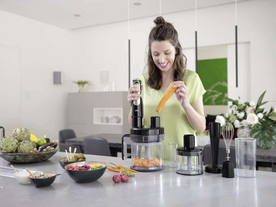 Bohaté příslušenství, které je společně s mixérem Braun dodáváno, nemusíte složitě šroubovat nebo montovat, když jej budete potřebovat rychle použít. Mixér Braun disponuje efektivním systémem EasyClick Plus, díky kterému vyměníte nástavce snadno a okamžitě, během pouhých pár vteřin. Příslušenství stačí do mixéru Braun MultiQuick 9 zacvaknout a ihned můžete fungovat. Navíc můžete veškeré příslušenství mýt i v myčce na nádobí.