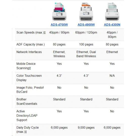 | Included Software‡ | Kofax PaperPort™ SE with OCR for Windows, Brother ScanEssentials for Windows, Brother Mobile Connect for iOS and Android™, Brother iPrint&Scan (desktop) for Windows and Mac® |