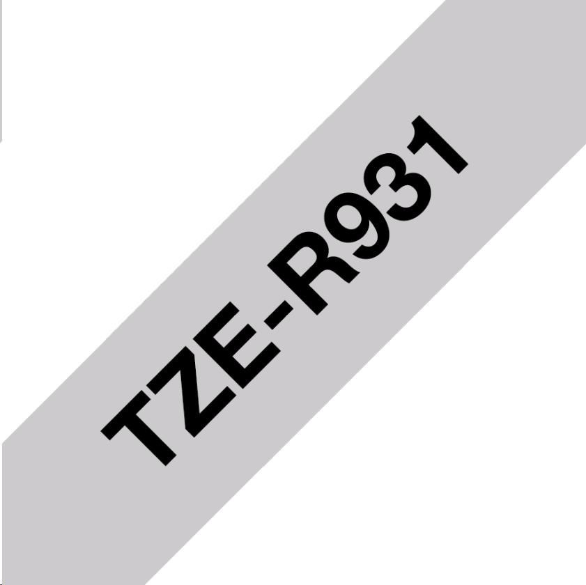 BROTHER TZE-R931 - kazeta TZ šířky 12mm, TEXTILNÍ páska 4m- pro tvorbu dárků - NELEPÍCÍ - STŘÍBRNÁ PÁSKA, ČERNÝ POTISK