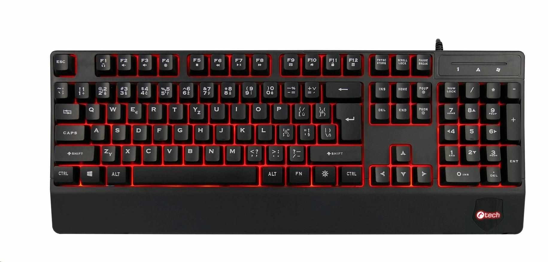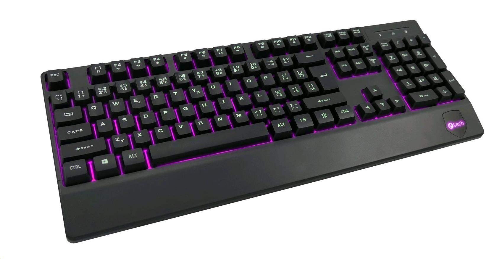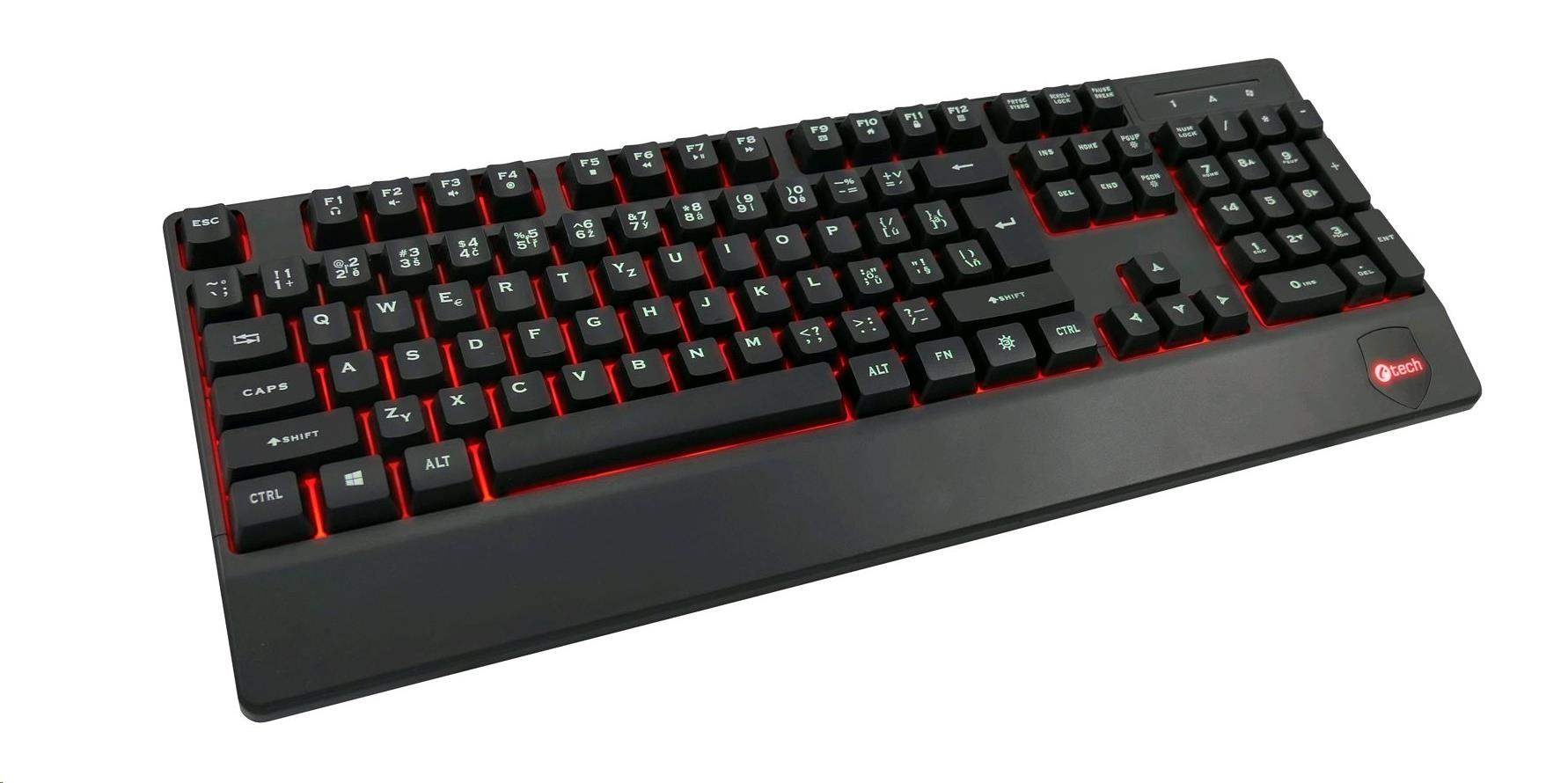 Klávesnice C-TECH KB-104BK, USB, 3 barvy podsvícení, černá, CZ/SK