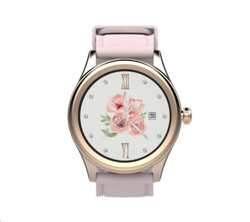 Smart hodinky Carneo Prime GTR v elegantním zlatém provedení, barevným dotykovým displejem lze aktivovat jednoduchým otočením ruky. Kromě běžných "smart" funkcí disponují i fitness sportovními funkcemi a to vše v elegantním business look provedení. Rosegold silikonový řemínek v designu koženého pásku s prošíváním umocňuje jejich eleganci.
