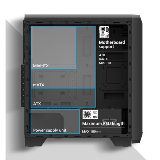 | Motherboard support | ATX, mATX, Mini-ITX |