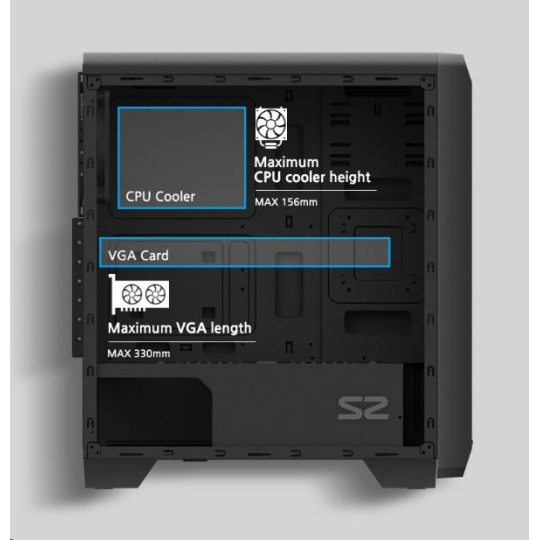 case Zalman miditower S2, ATX/mATX/Mini-ITX, bez zdroje, USB3.0, černá