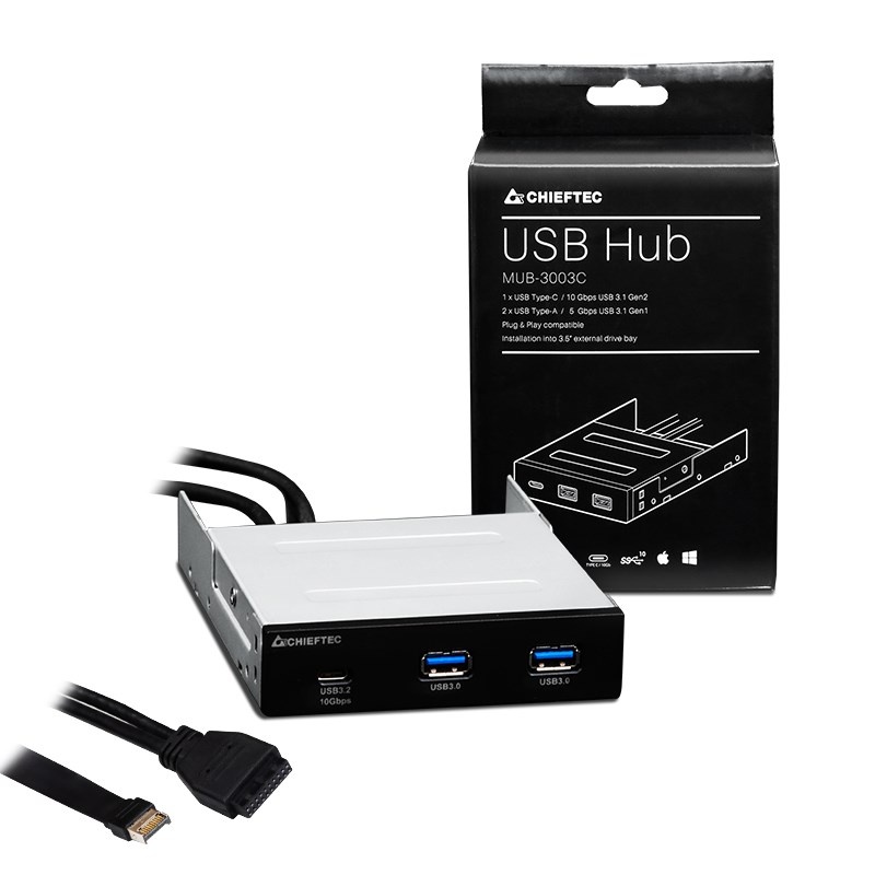 The CHIEFTEC MUB-3003C is a USB hub that allows for expansion of USB connectivity for older as well as new systems, adding two USB Type-A ports with 5 Gbps USB 3.1 Gen1 connection as well as one USB