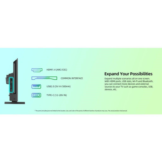 | Vstupy a výstupy: | USB-C, AV vstup mini, CI+, sluchátkový vstup 3.5 mm, digitální audio výstup, HDMI 1.4, ARC CEC, USB 2.0, LAN, antény RF a LNB |