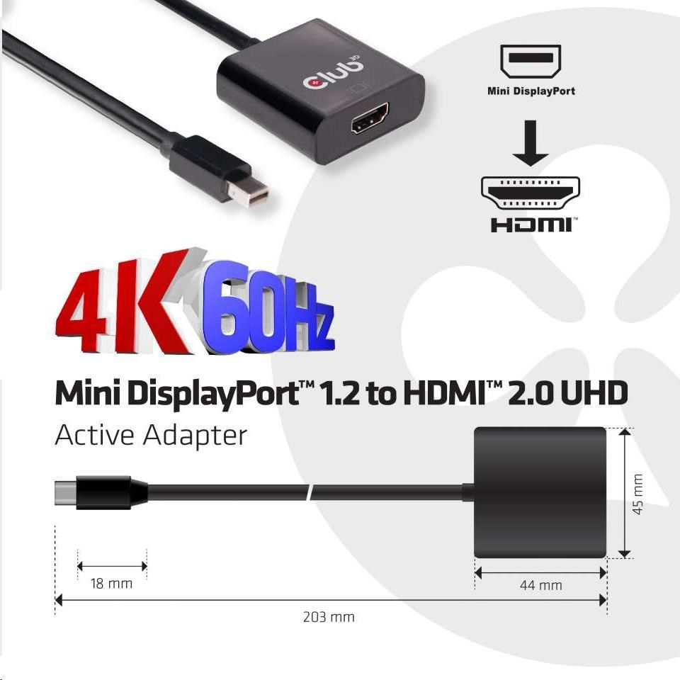 Club3D Adaptér aktivní mini DisplayPort 1.2 na HDMI 2.0 4K60Hz UHD, (M/F), 20cm