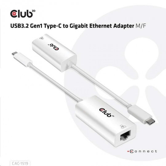 The Club 3D CAC-1519 is a USB3.2 GEN1 Type-C to Gigabit Ethernet Adapter. It enables your new MacBook Pro, ChromeBook or other USB-C supported host PC to get access to a fast Ethernet network by connecting the Gigabit Ethernet port. The Ethernet adapter is compact and highly portable. Powered by the USB C port, the adapter requires no external power and is ideal for use with notebooks and Ultrabooks.