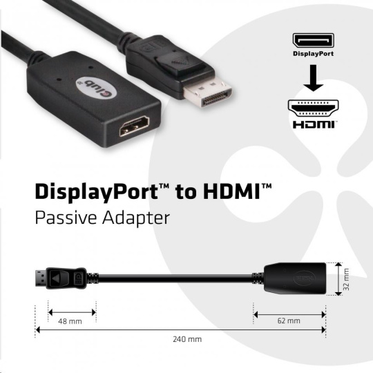 • Pasivní adaptér Club 3D DisplayPort ™ na HDMI ™