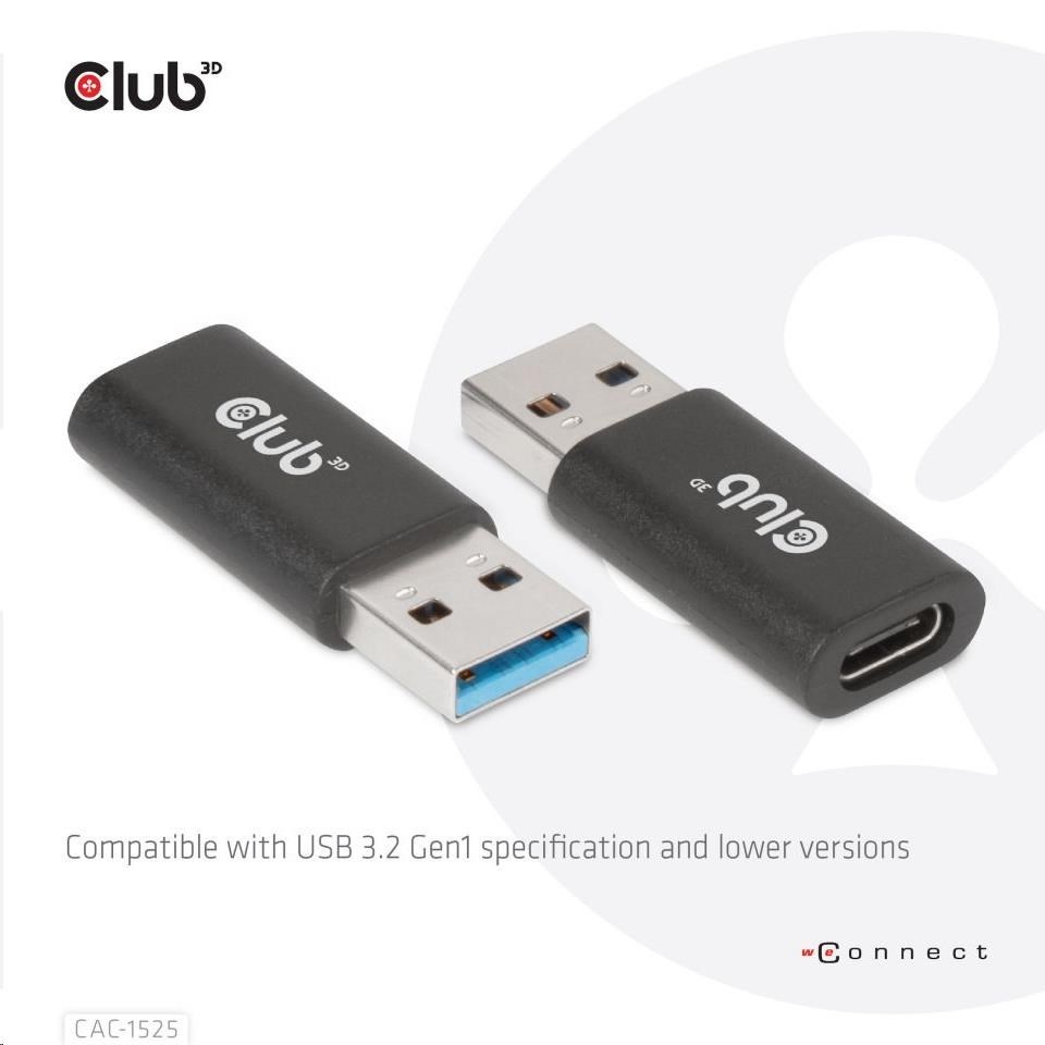Club3D adaptér USB 3.2 Gen1 Type A na USB 3.2 Gen1 Type C (M/F), černá