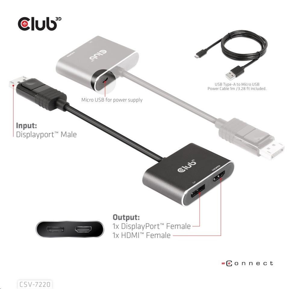 Club3D hub MST (Multi Stream Transport) DisplayPort 1.4 na DisplayPort + HDMI 4K60Hz (M/F)