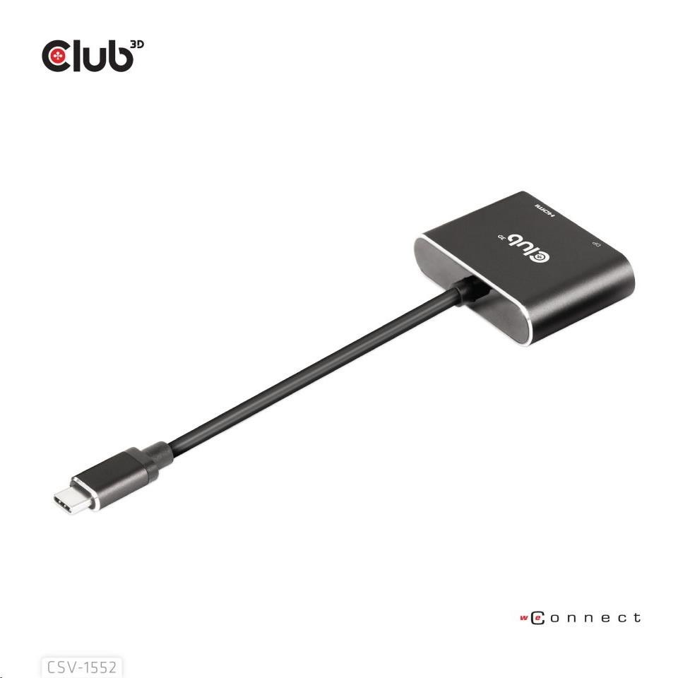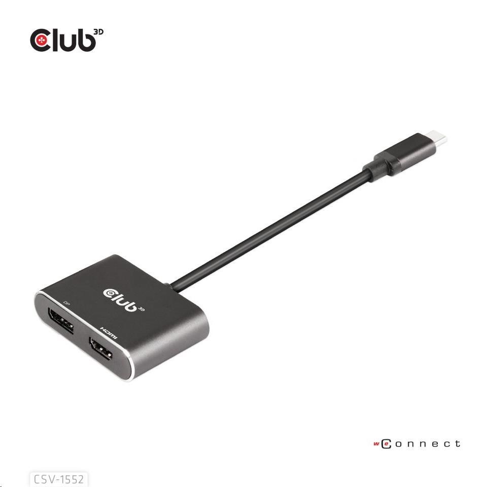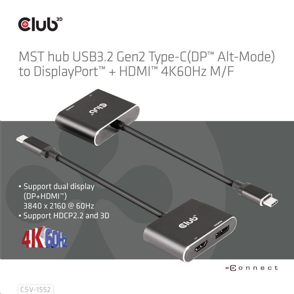 Club3D hub MST (Multi Stream Transport) USB3.2 Gen2 Type-C(DP Alt-Mode) na DisplayPort + HDMI 4K60Hz (M/F)