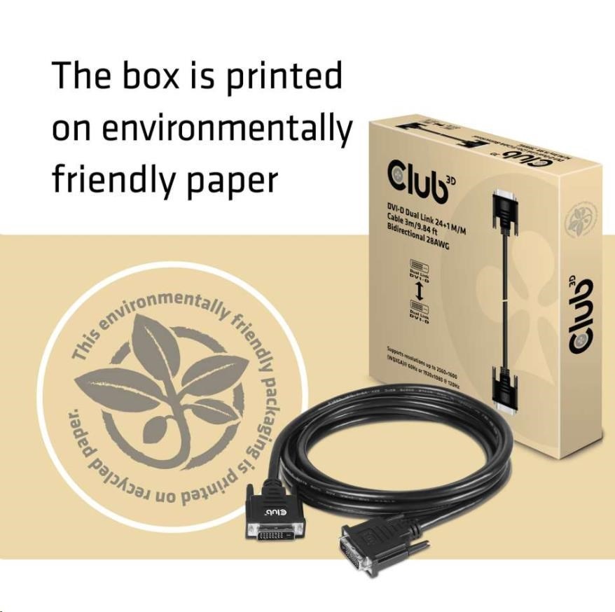 Club3D kabel DVI-D Dual Link (24+1), 3m, Bidirectional, 28 AWG