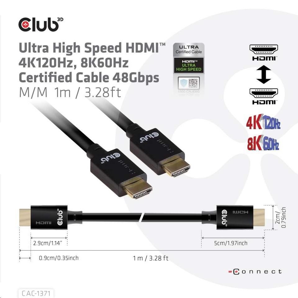 Club3D Kabel Ultra Rychlý HDMI™ Certifikovaný 4K 8K60Hz 48Gbps (M/M), 1m, 30 AWG