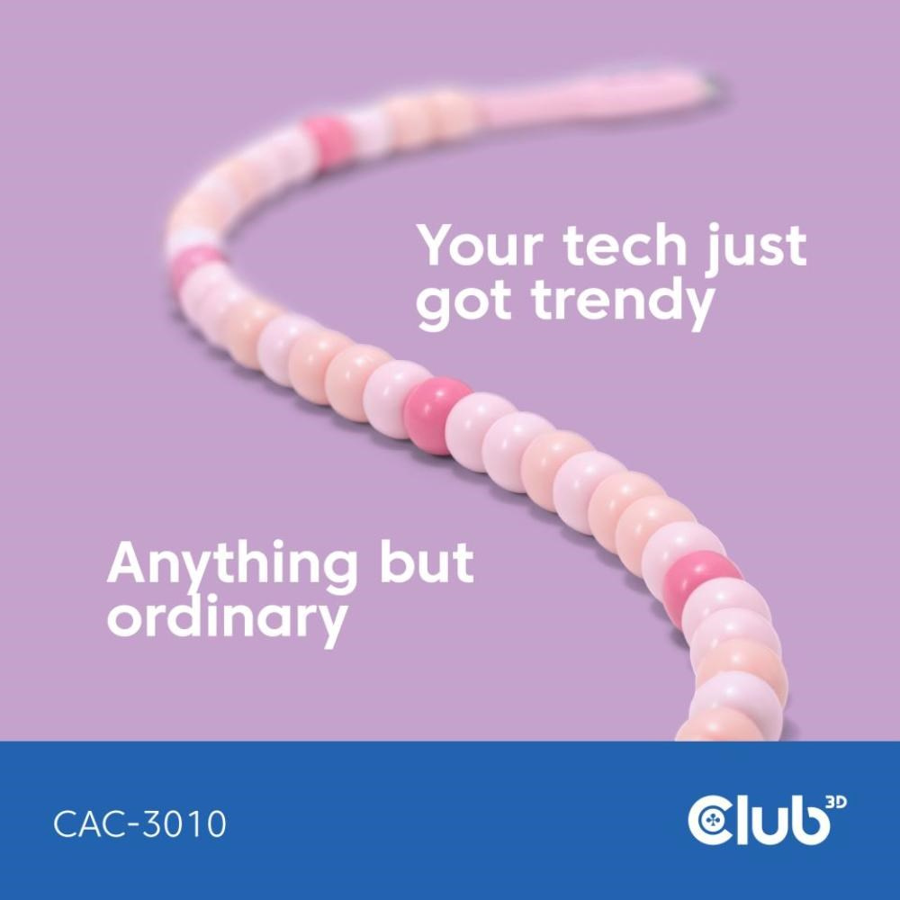 Club3D Kabel s korálky USB-C, 480Mbps, PD 60W, 2m, růžová