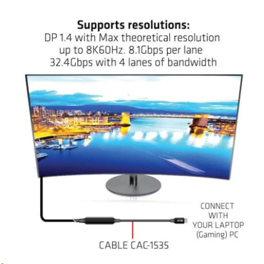 - Support DP 1.4 with Max theoretical resolution up to 8K/60Hz. 8.1Gbps per lane, 32.4Gbps with 4 lanes of bandwidth