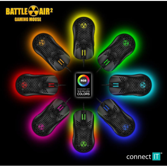 CONNECT IT BATTLE AIR 2 profesionální optická herní myš + SW, 12800 DPI, černá
