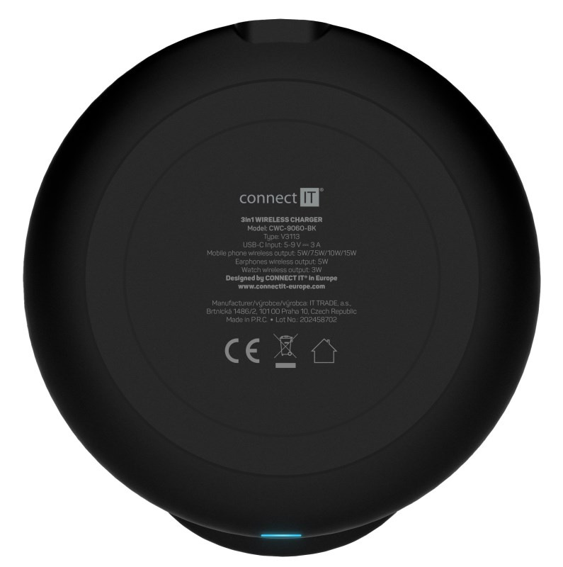 CONNECT IT Bezdrátová nabíječka 3v1 MultiCharge MagSafe pro IPhone, Apple Watch a AirPods, 15 W, Černá