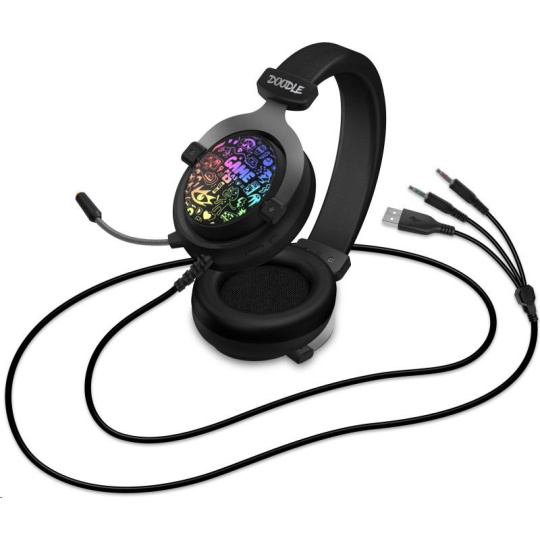 CONNECT IT DOODLE RGB herní sluchátka s mikrofonem, 2xJack+USB, černá