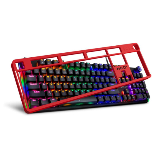Profesionální mechanická klávesnice NEO2 + series pro hráče počítačových her v českém a slovenském layoutu s devíti módy barevného Rainbow podsvícení. K dispozici je 12 multimediálních kláves a otočné kolečko pro nastavení hlasitosti a dalších funkcí.