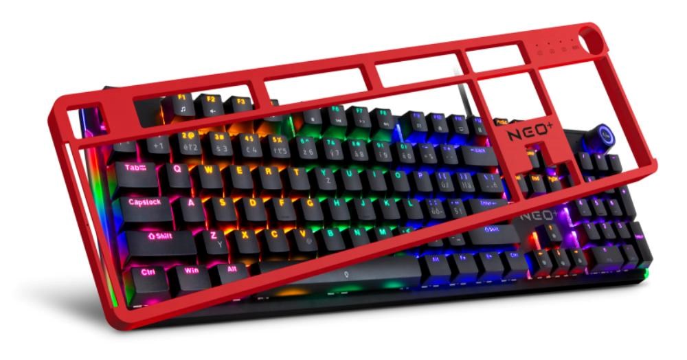 Profesionální mechanická klávesnice NEO2 + series pro hráče počítačových her v českém a slovenském layoutu s devíti módy barevného Rainbow podsvícení. K dispozici je 12 multimediálních kláves a otočné kolečko pro nastavení hlasitosti a dalších funkcí.