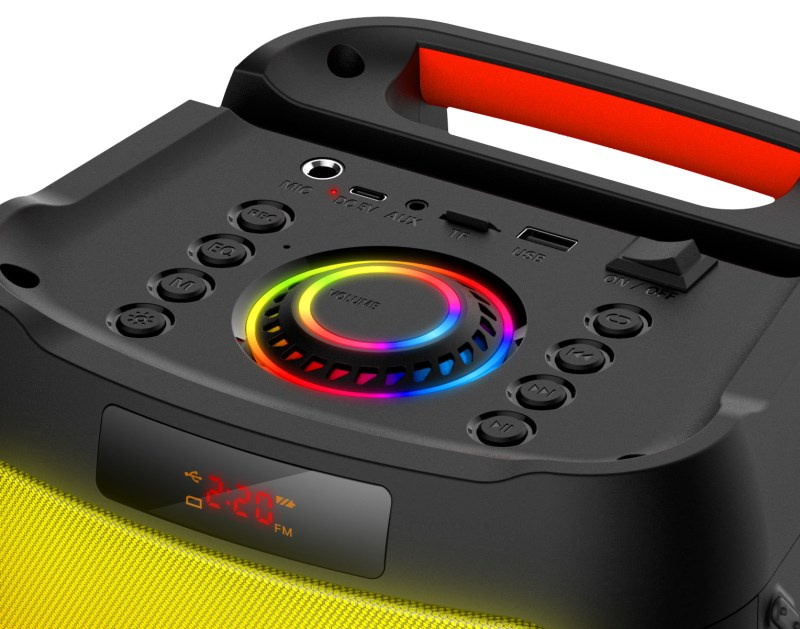 V horní části reproduktoru se nachází všechna potřebná ovládací tlačítka a nechybí ani vestavěný mikrofonu s funkcí hlasitého hands-free pro uskutečňování telefonních hovorů - stačí přijmout hovor a hlas volajícího slyšíte přímo v reproduktoru. Díky dodávánemu externím mikrofonu a KARAOKE funkcím na dálkovém ovládání si užijte spoustý zábavy s přáteli. Baterie s kapacitou 4500 mAh zabezpečí až 10 hodiny přehrávání a lze ji nabíjet pomocí dodávaného USB-C kabelu z jakékoliv USB nabíječky nebo power banky.
