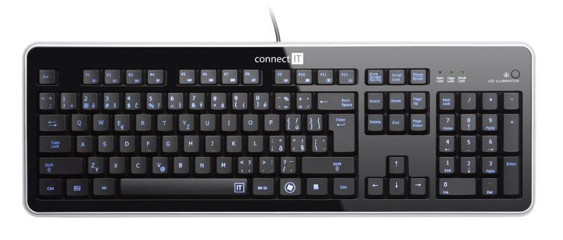 CONNECT IT Klávesnice CI-45 s LED podsvícením, USB