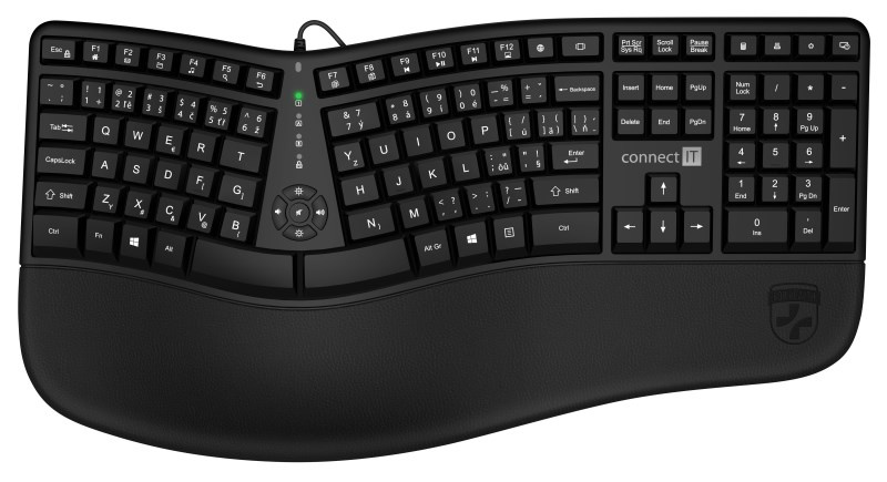 CONNECT IT Klávesnice FOR HEALTH ERGO drátová ergonomická klávesnice, CZ + SK, černá