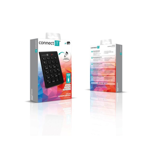CONNECT IT NumCalc bezdrátová numerická klávesnice, 1x AAA baterie, černá