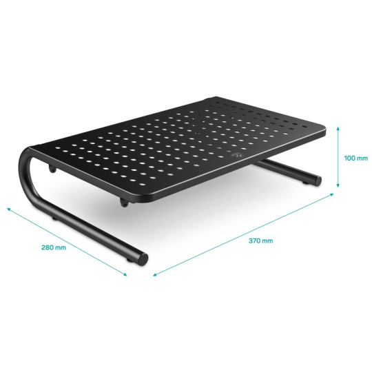 Multifunkční kovový podstavec je ideální pro všechny monitory, notebooky a jiné zařízení. Podstavec nabízí jednoduchý, ale elegantní design, který snadno zapadne do každé kanceláře či interiéru. Speciální děrovaná konstrukce podstavce zajištuje odvod horkého vzduchu z notebooku a tak zabraňuje jeho přehřátí.