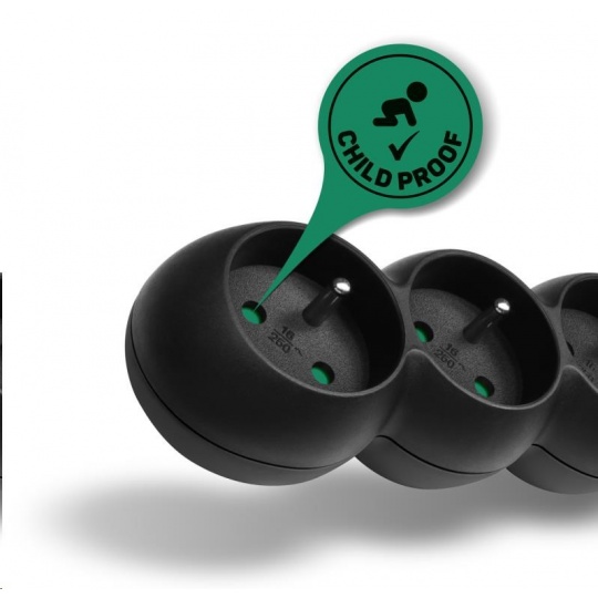 • Dětská ochrana všech zásuvek (zásuvky jsou přístupné pouze v případě zasunutí obou vidlic najednou, nelze tedy zasunout jednotlivě např. pouze šroubovák nebo pletací jehlici)