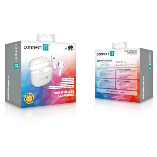 CONNECT IT Sluchátka True Wireless SonicBass, špunty do uší s mikrofonem, Bluetooth, bílá
