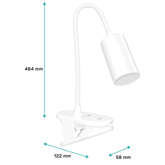 Díky flexibilnímu rameni nastavíte dokonalý úhel pro jakoukoliv práci. Lampička disponuje praktickým dotykovým spínačem, který umožňuje zapnout/vypnout lampu, plynule nastavit úroveň jasu světla nebo nastavit barevnou teplotu světla ve 3 různých úrovních (3000/4500/6500 K). Pomocí klipu můžete lampičku umístit nejen na Váš pracovní stůl, ale například na poličku, noční stolek či rám postele.