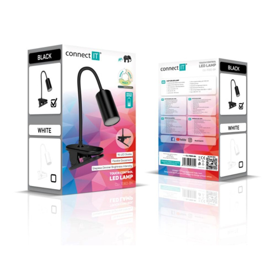 Díky flexibilnímu rameni nastavíte dokonalý úhel pro jakoukoliv práci. Lampička disponuje praktickým dotykovým spínačem, který umožňuje zapnout/vypnout lampu, plynule nastavit úroveň jasu světla nebo nastavit barevnou teplotu světla ve 3 různých úrovních (3000/4500/6500 K). Pomocí klipu můžete lampičku umístit nejen na Váš pracovní stůl, ale například na poličku, noční stolek či rám postele.