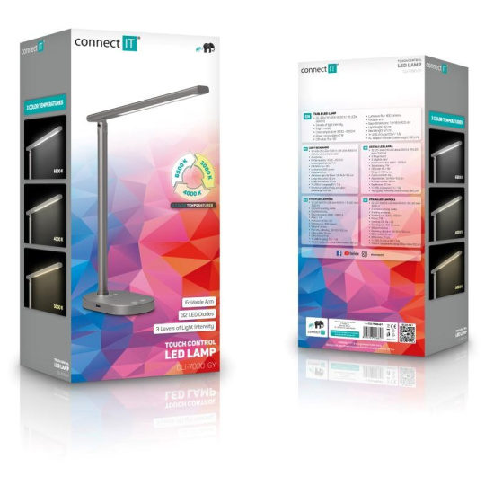 CONNECT IT Stolní LED lampa Shine, USB-A, šedá