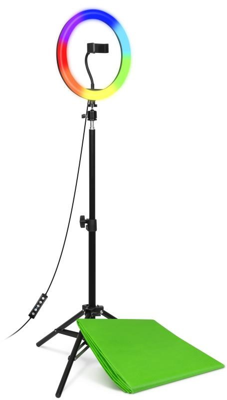 Chcete-li povznést vaše videa a fotky na vyšší úroveň, využijte přiložený green screen, díky kterému vaše tvorba zaujme unikátním pozadím a získá originální vibe. Absolutní svobodu v nastavení požadovaného úhlu garantuje úchyt světla pomocí kulové hlavy. Barevnou teplotu světla je možno nastavit od studené až po teplou ve třech úrovních. Držák mobilního telefonu umístěný na flexibilním husím krku umožňuje pohodlné nastavení do libovolného snímacího úhlu fotografií a videí. Ve výbavě nechybí dálkový ovladač pro vypnutí/zapnutí světla, nastavení jeho intenzity nebo barevné teploty.