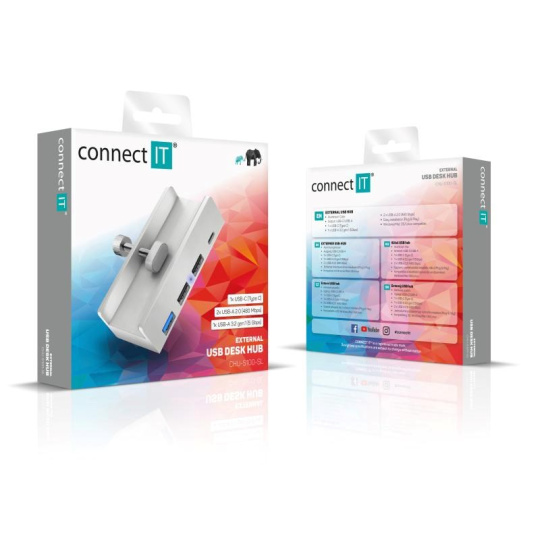 CONNECT IT USB Hub DeskHub, 1xUSB-C, 1xUSB 3.2, 2xUSB 2.0, stříbrná