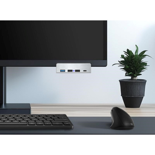 Umožní napájení a připojení dalších periferií jako jsou např. myš, klávesnice, MP3 přehrávač, digitální fotoaparát, externí pevný disk, flashdisk atd. Jedná se o výborný doplněk běžných stolních počítačů i přenosných notebooků, které nemají dostatek vlastních portů. Díky svým kompaktním rozměrům se jedná o ideální příslušenství k notebookům, který upevníte na desku stolu. Pro připojení k počítači je určeno rozhraní USB-C (Type-C) nebo USB-A 3.2 gen 1. Napájený je z USB portu počítače nebo notebooku, tudíž nepotřebuje žádné další napájení.