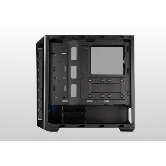 MasterBox MB520 ARGB je optimální herní počítačová skříň formátu ATX, ve které se můžete pochlubit osvětlením komponent a zároveň udržet systémy chladné. Přední panel DarkMirror je o odstín tmavší, aby dodal předinstalovaným ventilátorům ARGB ostřejší kontrast. Na každé straně předního panelu se shora dolů rozprostírá ventilační síťka, která zajišťuje značné proudění vzduchu uvnitř skříně.