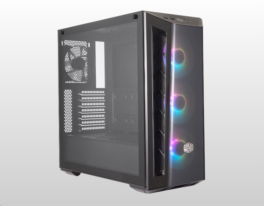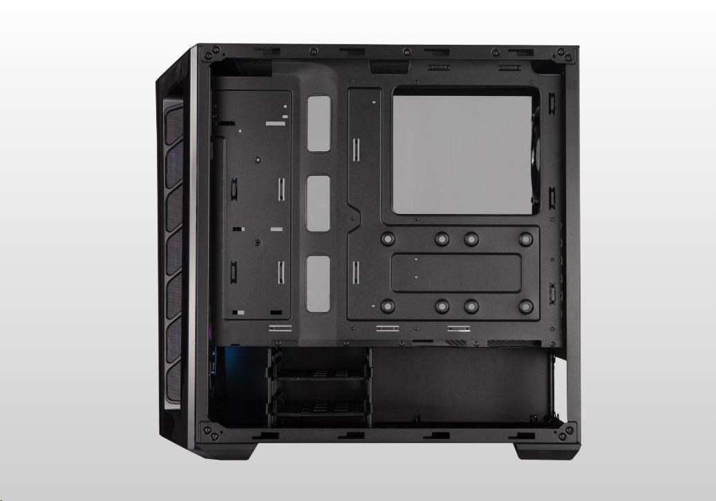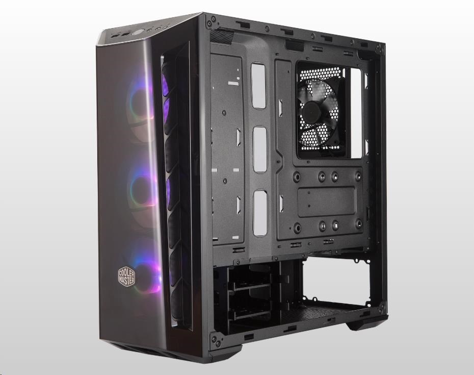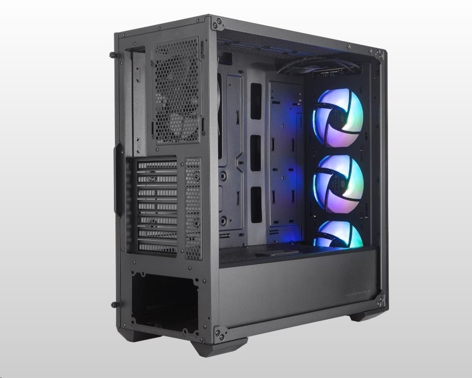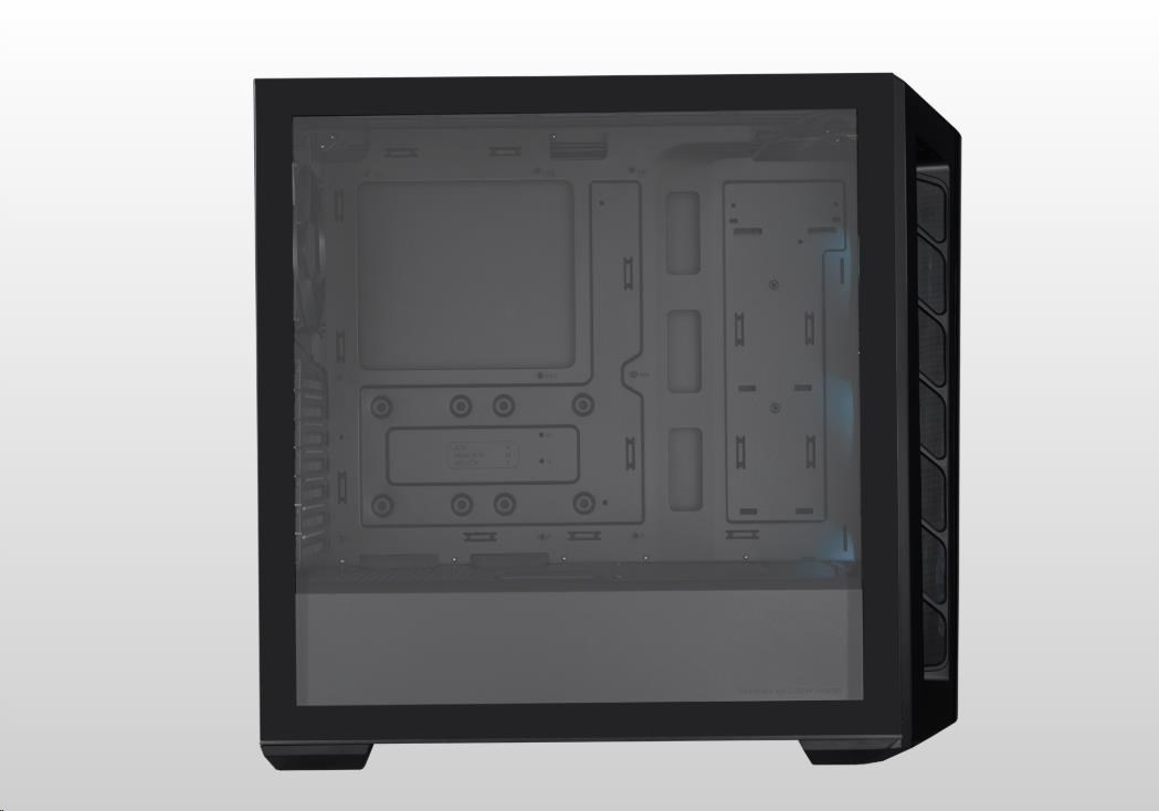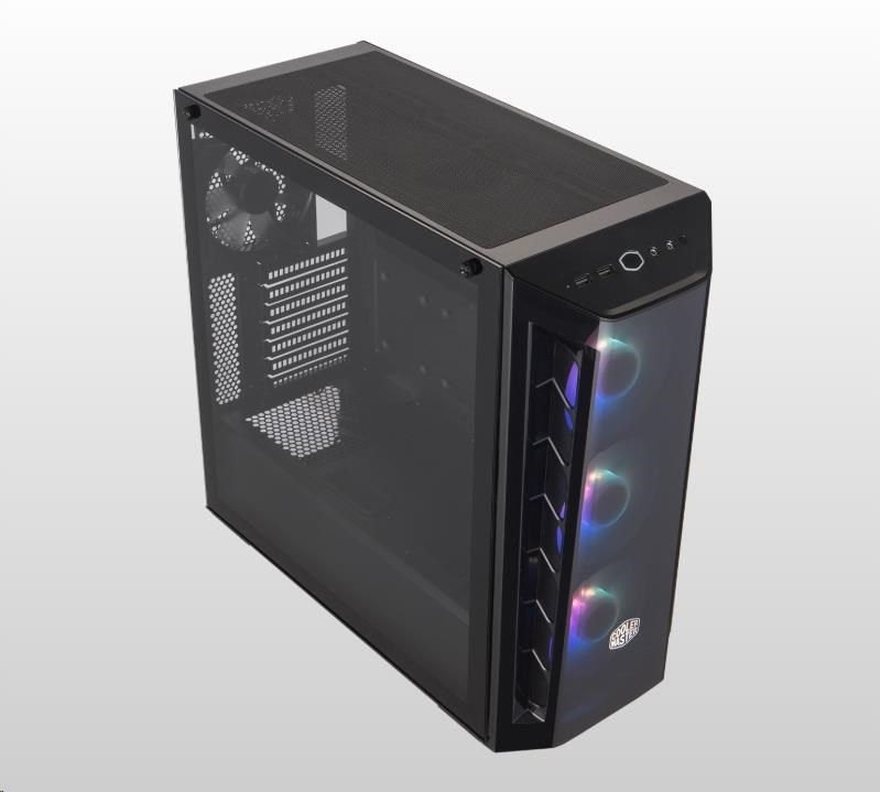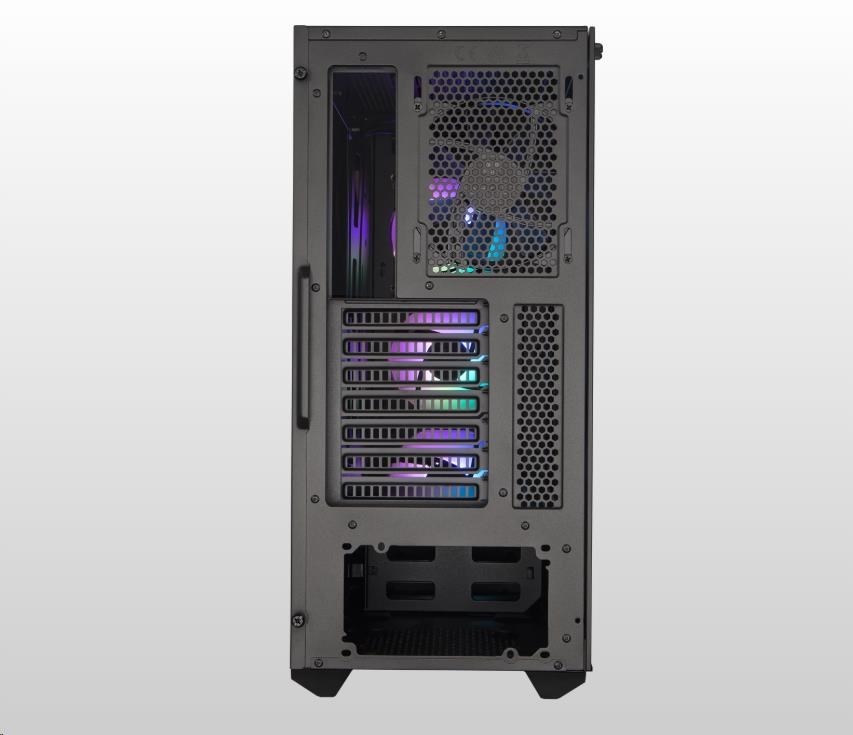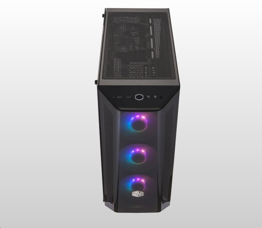 MasterBox MB520 ARGB je optimální herní počítačová skříň formátu ATX, ve které se můžete pochlubit osvětlením komponent a zároveň udržet systémy chladné. Přední panel DarkMirror je o odstín tmavší, aby dodal předinstalovaným ventilátorům ARGB ostřejší kontrast. Na každé straně předního panelu se shora dolů rozprostírá ventilační síťka, která zajišťuje značné proudění vzduchu uvnitř skříně.
