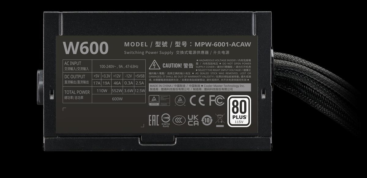 Cooler Master zdroj Elite NEX 600W 230V, 120mm, 80+ White, Mesh (opletené kabely)