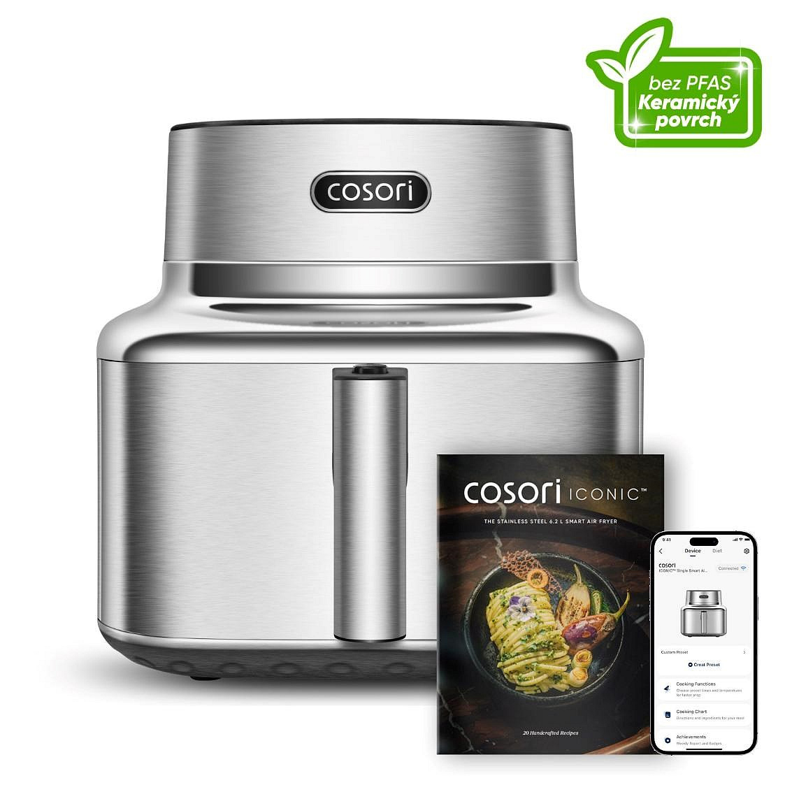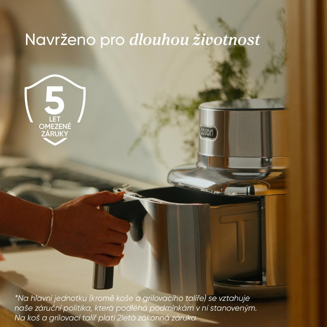 Součástí balení je elegantní kuchařka plná inspirace, dostupná také v online české verzi, která vás provede zdravým vařením krok za krokem. Prodloužená 5letá záruka*, testovaná životnost 2000 hodin a odolnost na 300 mycích cyklů v myčce dokazují, že Iconic je vytvořený na dlouhá léta každodenní radosti. To vše v těle, které vypadá stejně dobře, jako vaří. COSORI Iconic není spotřebič – je to styl života, kde se design, zdraví a výkon setkávají v dokonalé harmonii.