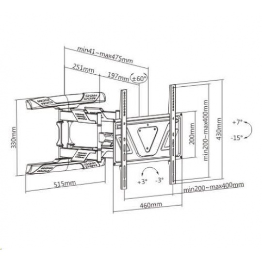 Špičkový nástěnný držák s polohováním Tv 32-80", otočný, sklopný, výsuvný     Nástěnný držák na televize, který vyniká skvělou nastavitelností, výbornou konstrukcí a krásným dizajnem. Vhodný je na všechny typy a značky televizí, jejichž hmotnost není vyšší jak 45kg a které podporují VESA standardy od 200x200 do 400x400. Unikátní konstrukce držáku umožňuje zasunutí televize ke zdi na vzdálenost pouhých 41mm a maximální vysunutí až na vzdálenost 475mm. Otáčení je možné na obě strany minimálně o 60°, náklon je solidních 15° dolů nebo 7° nahoru. Držák podporuje korekci roviny obrazovky, konstrukce je osazena kryty pro vedení kabeláže. Držák Fiber Mounts Super-2 doporučujeme i náročným uživatelům, díky své kvalitě, dizajnu, nastavitelnosti, kvalitnímu zpracování a dostupné ceně je dostupný téměř každému.     Fiber Mounts Super-2 je špičkový držák na televize 37-80" za skvělou cenu, vhodný nejen pro náročné uživatele     Technické údaje:   nosnost 45kg podpora VESA standardu 200x200 až 400x400 vhodný na televize s úhlopříčkou 32" až 80" výsuvný, nastavení vzdálenosti od zdi 41mm až 475mm otočný do stran, minimálně +/- 60° náklopný, směrem dolů až o 15°, nahoru až o 7° korekce roviny obrazovky +/- 3° ultra tenká, silnostěnná konstrukce vynikající bezpečnost a stabilita bez prověšení ramen i při maximálním zatížení a maximálním vysunutí krásný dizajn krytky pro vedení kabeláže barevné provedení černé záruka 5 let    Nástěnný výsuvný ultraslim držák na Tv Fiber Mounts Super-2 podporuje VESA standardy:   VESA 200x200 VESA 300x200 a 200x300 VESA 300x300 VESA 400x200 a 200x400 VESA 400x300 a 300x400 VESA 400x400.