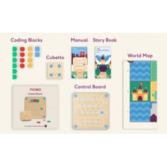 Každá z těchto sad obsahuje hrací mapu z polyesteru o velikosti 1 x 1 metr, která je rozdělena na 36 polí o rozměrech 15 x 15 cm, a knihu s příběhy, ve kterých Cubetto prožívá svá dobrodružství.