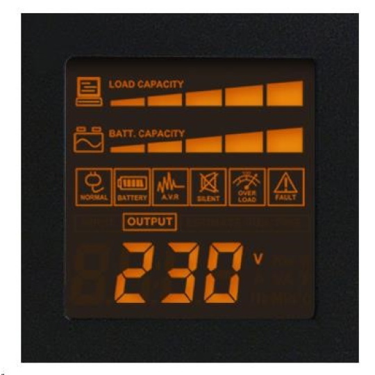| Zvukové alarmy | Provoz na baterie, Nízké napětí baterie, Přetížení | |