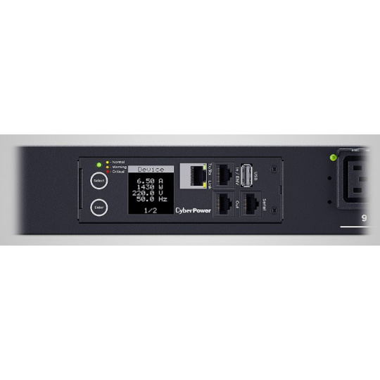 CyberPower PDU81405 je síťová jednotka distribuce napájení ideální pro datová centra a podnikové aplikace, která poskytuje místní/vzdálené monitorování v reálném čase a ovládání zapínání/vypínání jednotlivých zásuvek pro vzdálené restarty, plánované zapnutí/vypnutí a další. Funkce Daisy Chain také umožňuje monitorovat a ovládat několik PDU připojených dohromady pod jednou IP adresou.