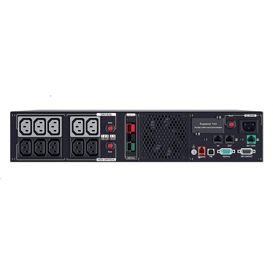 | Dodávka obsahuje | UPS, Kolejnice a Úchytypro montáž do Racku, sériový, USB, EPO kabel, uživatelská příručka, kabely (2) IEC C13-C14 |