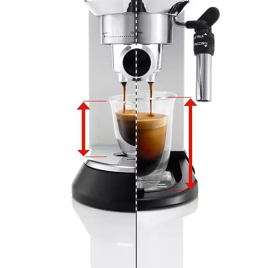 Stylový a kompaktní kávovar navržený tak, aby doplnil vaši kuchyňskou pracovní desku. Přístroj na přípravu espressa se lesklým tělem z nerezové oceli a matným bílým provedením Dedica dodá každé kuchyni nádech autentického italského designu. Vychutnejte si bohaté, jemné espresso a použijte nastavitelný „Cappuccino systém“ k napaření mléka nebo vylepšení kávy krémovou mléčnou pěnou.