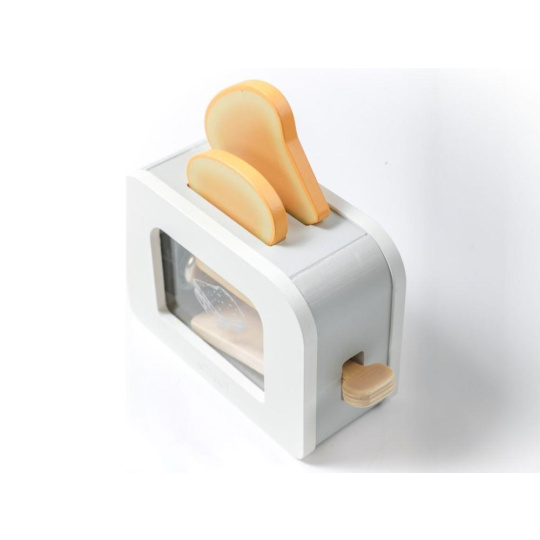 Dřevěný toustovač v jedinečném designu, s průhlednou vnitřní částí, je edukativní hračkou, která umožní dětem každý den připravovat křupavé tousty s máslem, džemem, se slaninou, salátem nebo rajčátkem pro oblíbené panenky, plyšáky i rodiče. Dřevěná hračka v podobě dětského toustovače s příslušenstvím je stylovým doplňkem do dětské kuchyňky nebo obchůdku..