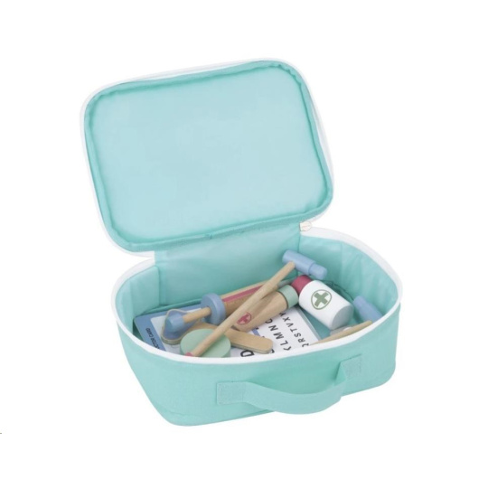 Doktorské vybavení v praktické brašně umožní dětem vyšetřovat pacienty v podobě plyšových hraček, panenek, kamarádů nebo rodičů, stanovit diagnózu a zahájit léčbu. Součástí dětského doktorského setu je základní lékařské vybavení včetně oční tabulky pro vyšetření zraku.